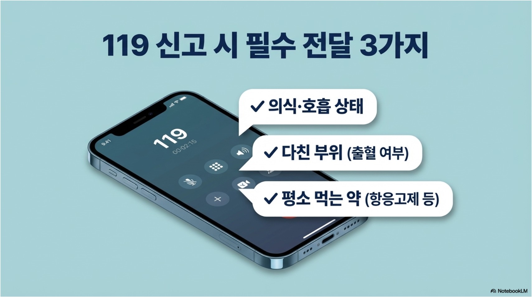 그리고 상담원이 안내하는 응급처치 지시는 전화를 끊지 말고 끝까지 듣는 것이 중요합니다. 현장 판단이 불확실할수록, 혼자 결정하기보다 지시에 따라 움직이는 편이 훨씬 안전합니다.