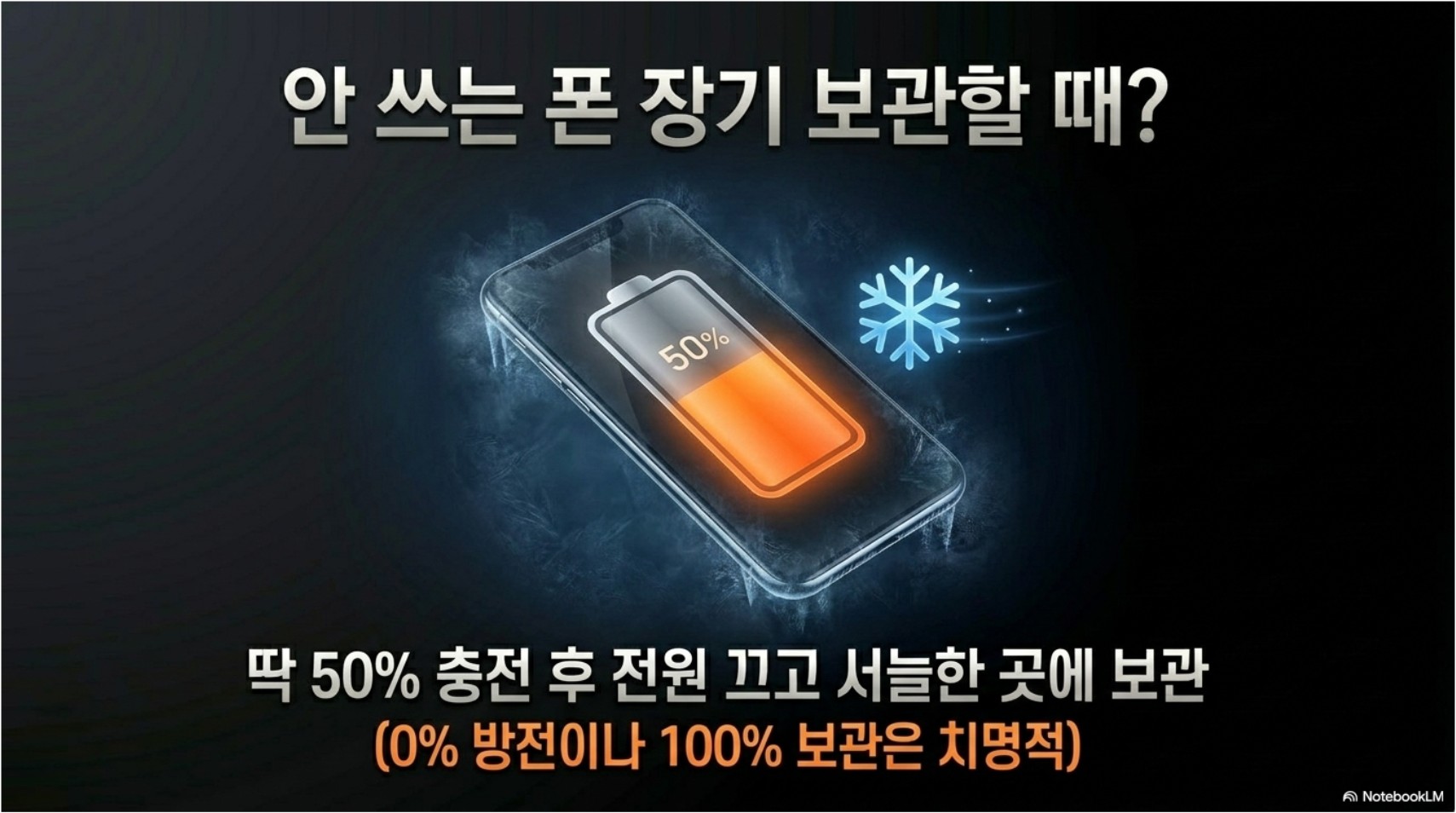 서브폰, 중고 판매 예정 기기, 태블릿처럼 장기간 사용하지 않는 기기는 보관 방법도 중요합니다. 배터리를 0% 상태로 오래 두면 깊은 방전 상태가 되어 다시 충전되지 않을 수 있습니다.