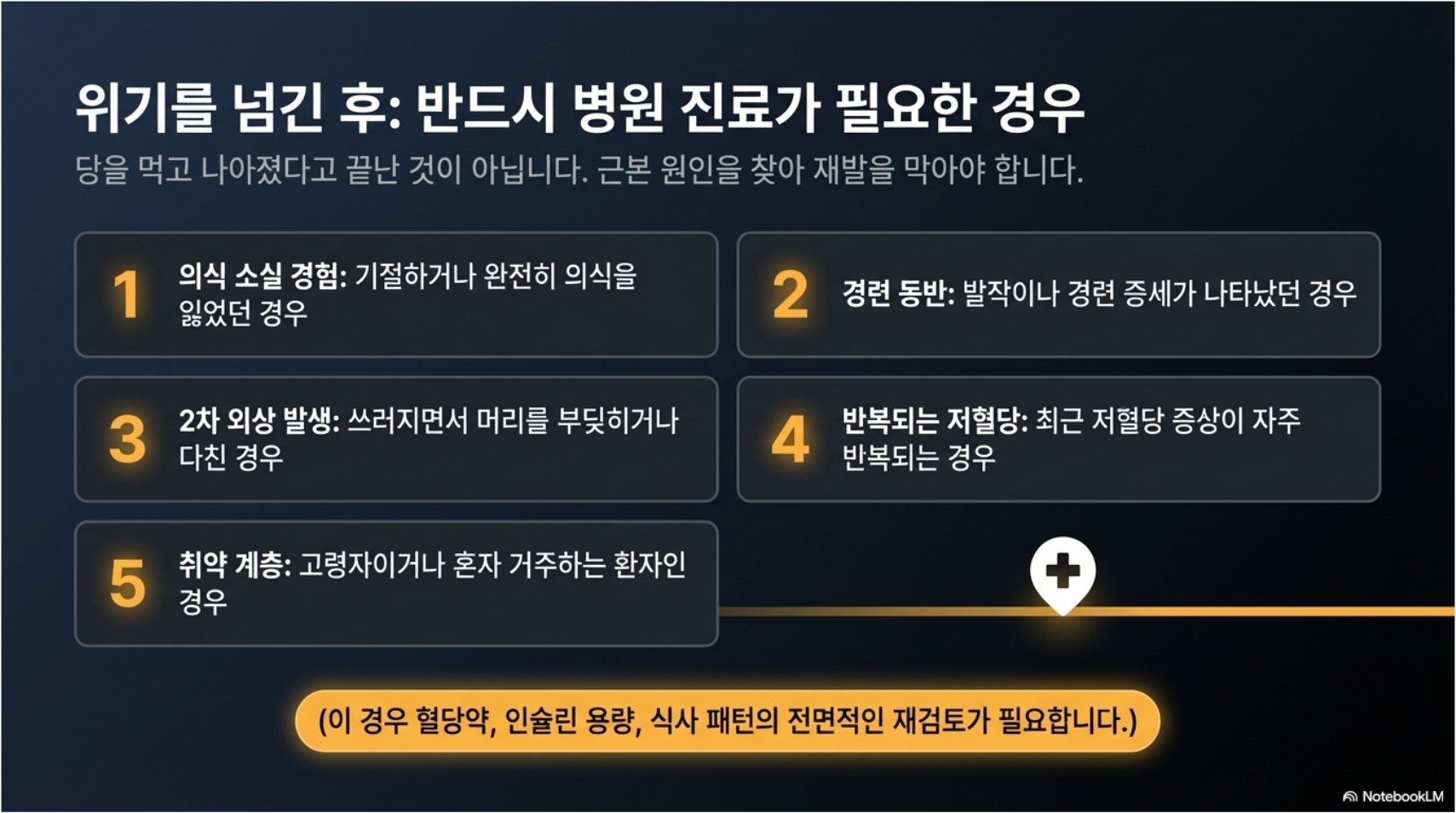단순히 당을 먹고 나아졌다고 끝낼 일이 아닐 수 있습니다. 최근 식사량, 운동량, 음주 여부, 복용 중인 약, 평소 혈당 패턴 등을 다시 점검해야 재발을 줄일 수 있습니다.