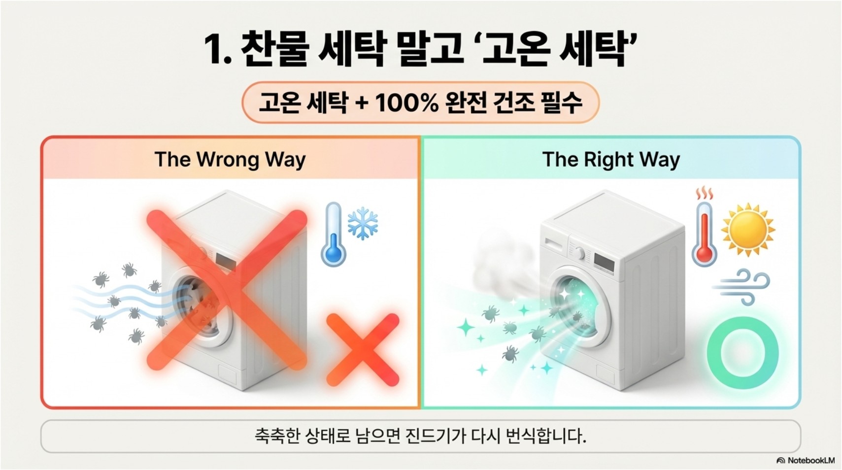 정리: 집 먼지 진드기 제거 방법은 청소가 아니라 환경 관리입니다