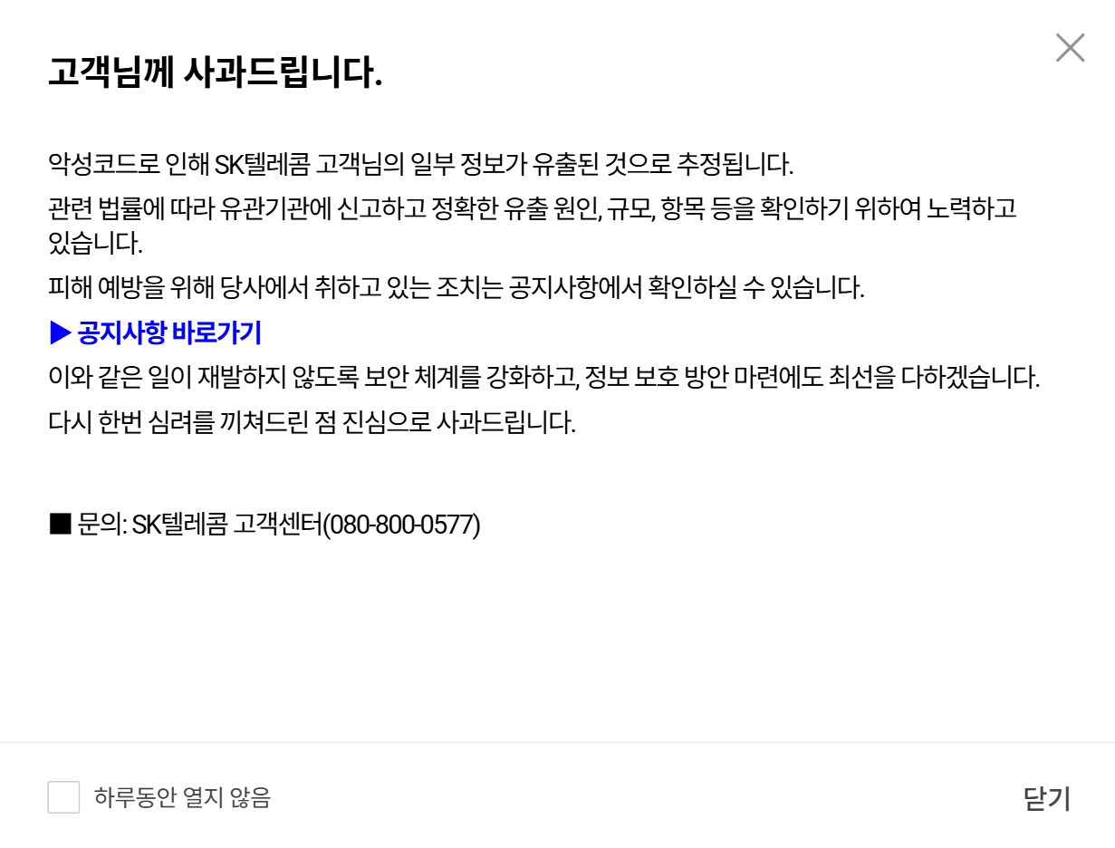 SK텔레콤은 이번 사고 직후 즉시 조치에 들어갔고, 한국인터넷진흥원(KISA)과 개인정보보호위원회에도 즉시 보고를 완료했습니다.